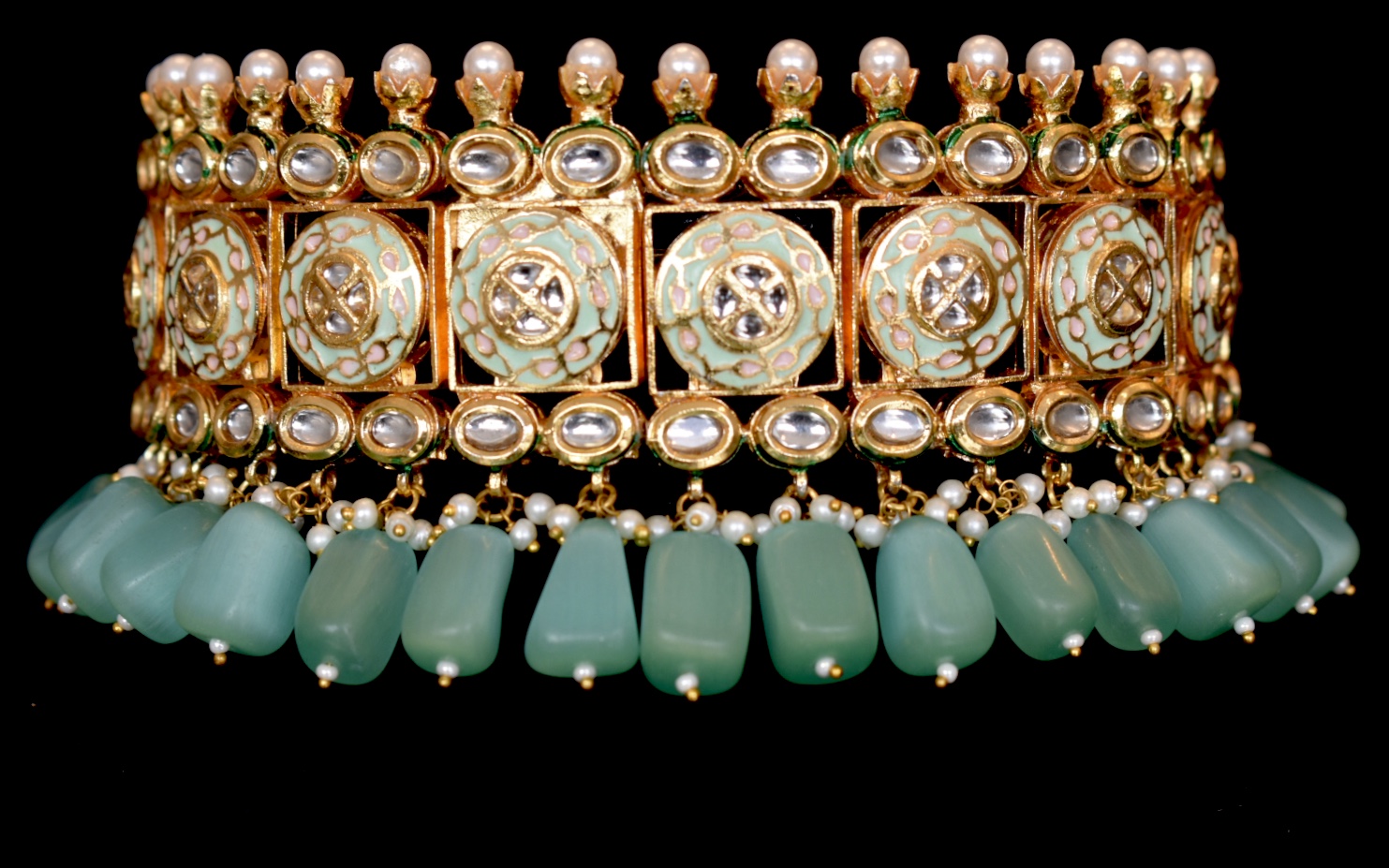 Meenakari Chokker with semi precious stones.